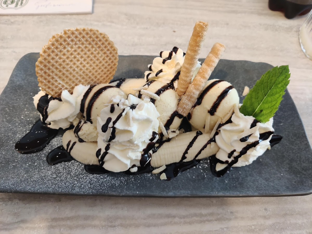 Super nettes Service. Sehr guter Eiskaffee und Fruchtschnitte. Für unseren Hund wurde ohne Verlangen gleich Wasser gebracht. Ein sehr gemütlicher Ort um eine Wanderung ausklingen zu lassen. Top Empfehlung